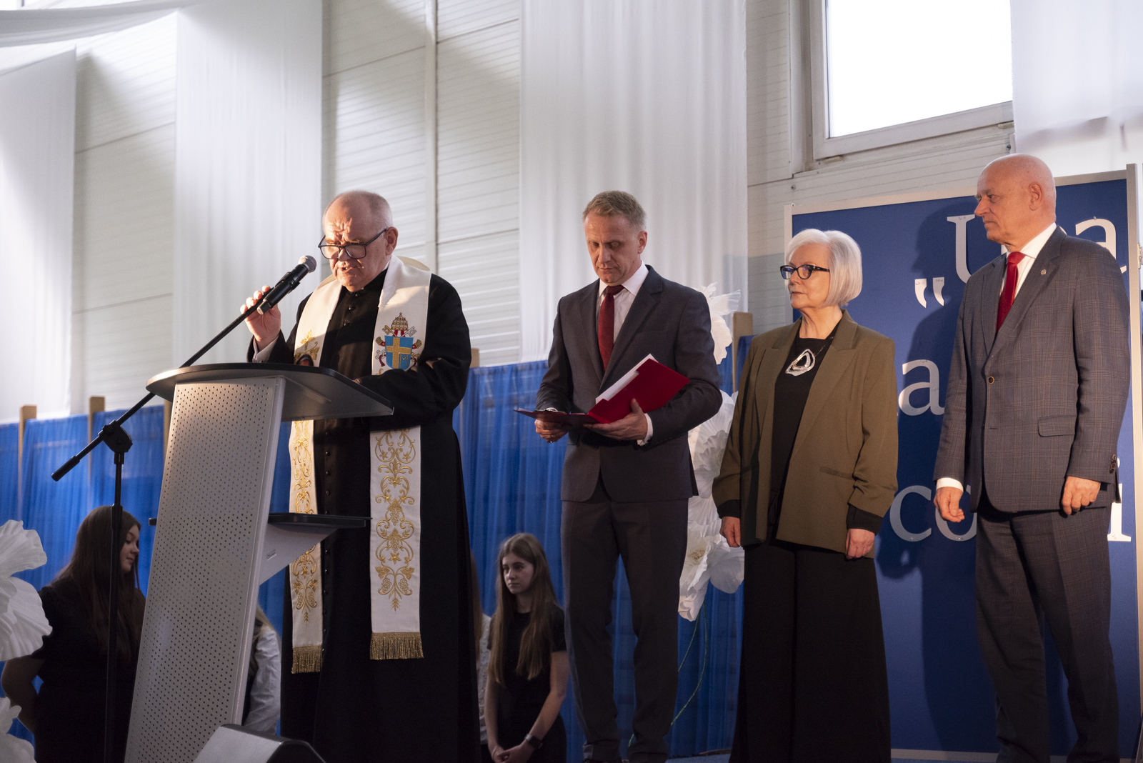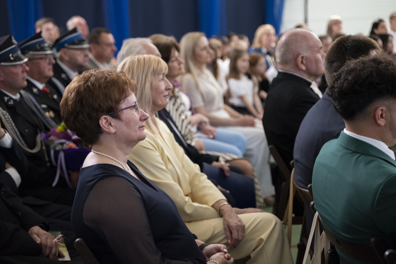 Po zakończeniu nabożeństwa uformował się pochód, który przy dźwiękach orkiestry skierował się do szkoły, gdzie odbyła się główna część uroczystości. W przygotowanej na tę okazję przestrzeni zgromadzili się uczniowie, nauczyciele, rodzice, zaproszeni goście oraz mieszkańcy Bonikowa. Po oficjalnym powitaniu, którego dokonała dyrektor szkoły Beata Kubacka, rozpoczęła się część przemówień i gratulacji. W swoich wystąpieniach goście podkreślali znaczenie wyboru patronów, przypominając, że Helena i Alfred Chłapowscy byli ludźmi głęboko zakorzenionymi w swojej małej ojczyźnie, zaangażowanymi społecznie, oddanymi sprawom publicznym i wiernymi wartościom służby drugiemu człowiekowi. Głos zabrali między innymi senator Wojciech Ziemniak, Aleksandra Chłapowska-Myjak, wójt Andrzej Przybyła, wicestarosta Albert Pelc, przedstawiciele Sejmiku Województwa Wielkopolskiego, Kuratorium Oświaty w Poznaniu oraz reprezentanci lokalnej społeczności. Szczególnie poruszające było wystąpienie wnuczki patronów, które miało niezwykle osobisty i emocjonalny charakter. Rodzinne wspomnienia oraz przywołanie losów Heleny i Alfreda Chłapowskich nadały całej uroczystości wymiar nie tylko oficjalny, ale również głęboko ludzki i wzruszający: